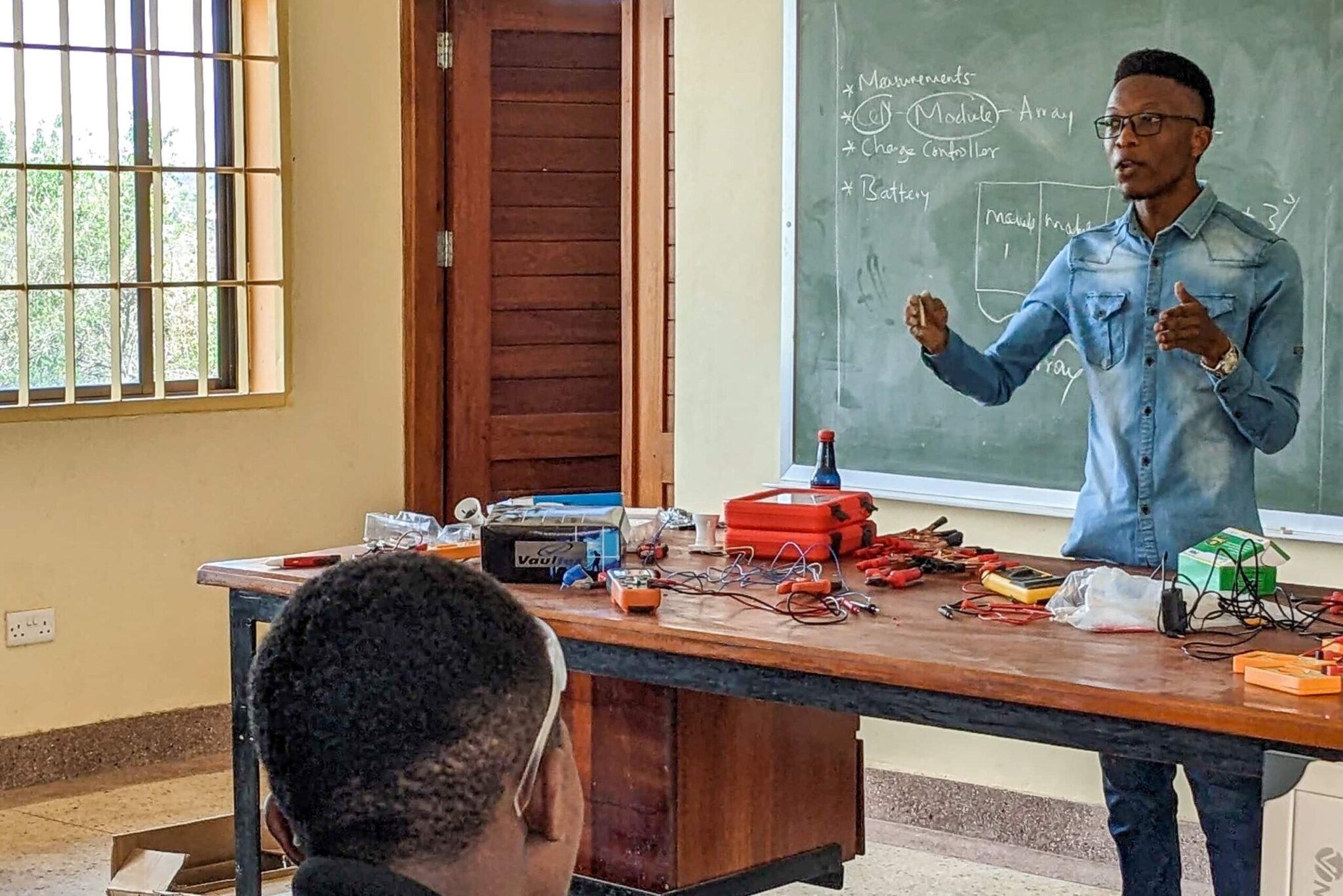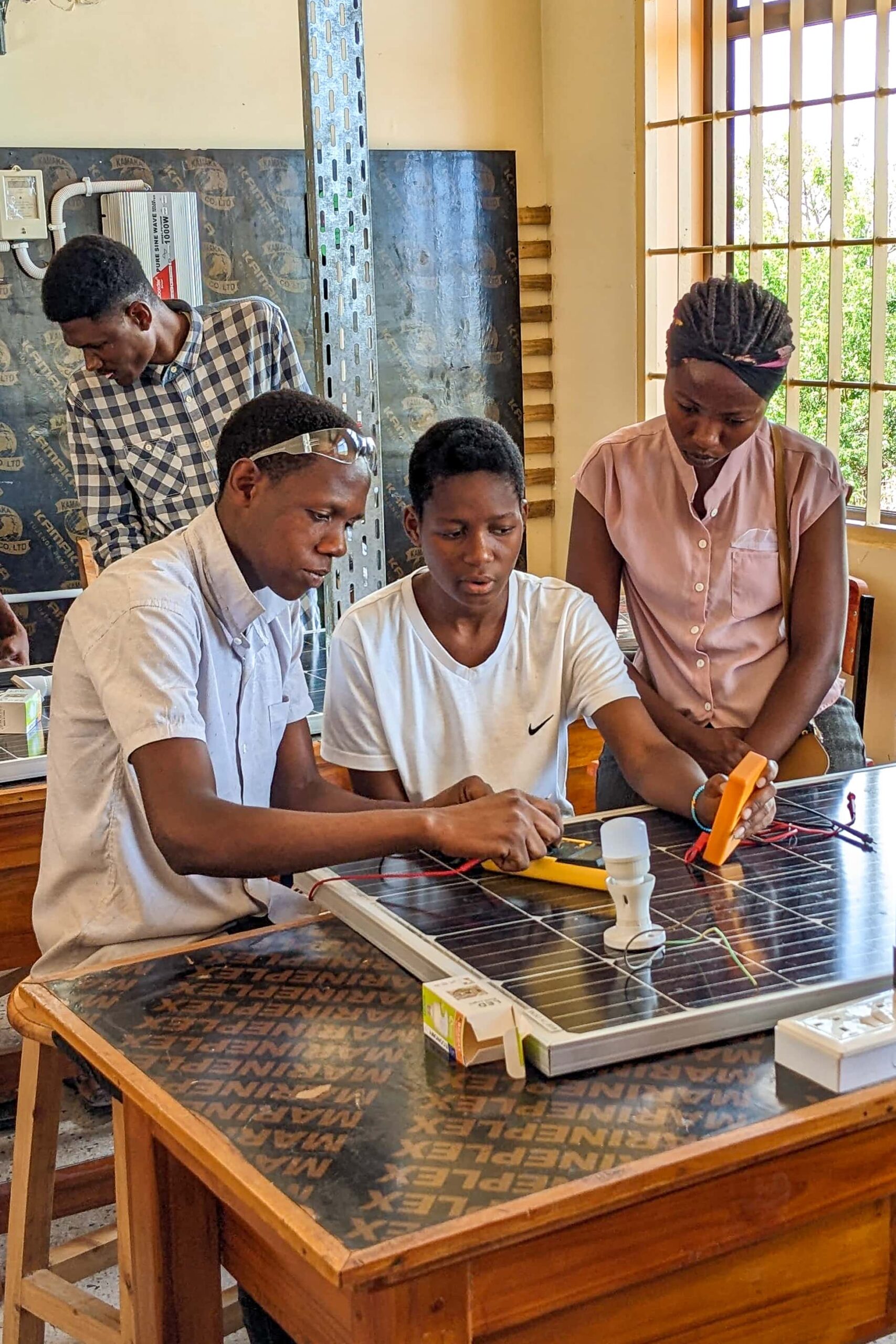 Während der Corona-Pandemie konnte der Unterricht in unseren Berufsbildungsprojekten nicht mehr vor Ort stattfinden. Daher haben wir mit unseren lokalen Partnerorganisationen eine digitale Lernplattform für die Solarbranche aufgebaut. In Tansania ist die Berufsschule Tuwapende Watoto unsere Partnerin. Eine Bedarfsanalyse hat gezeigt, dass die meisten Schüler:innen keine Laptops, sehr wohl aber ein Smartphone besitzen. Daher ist die Lernplattform auf Mobiltelefone und Tablets ausgerichtet.