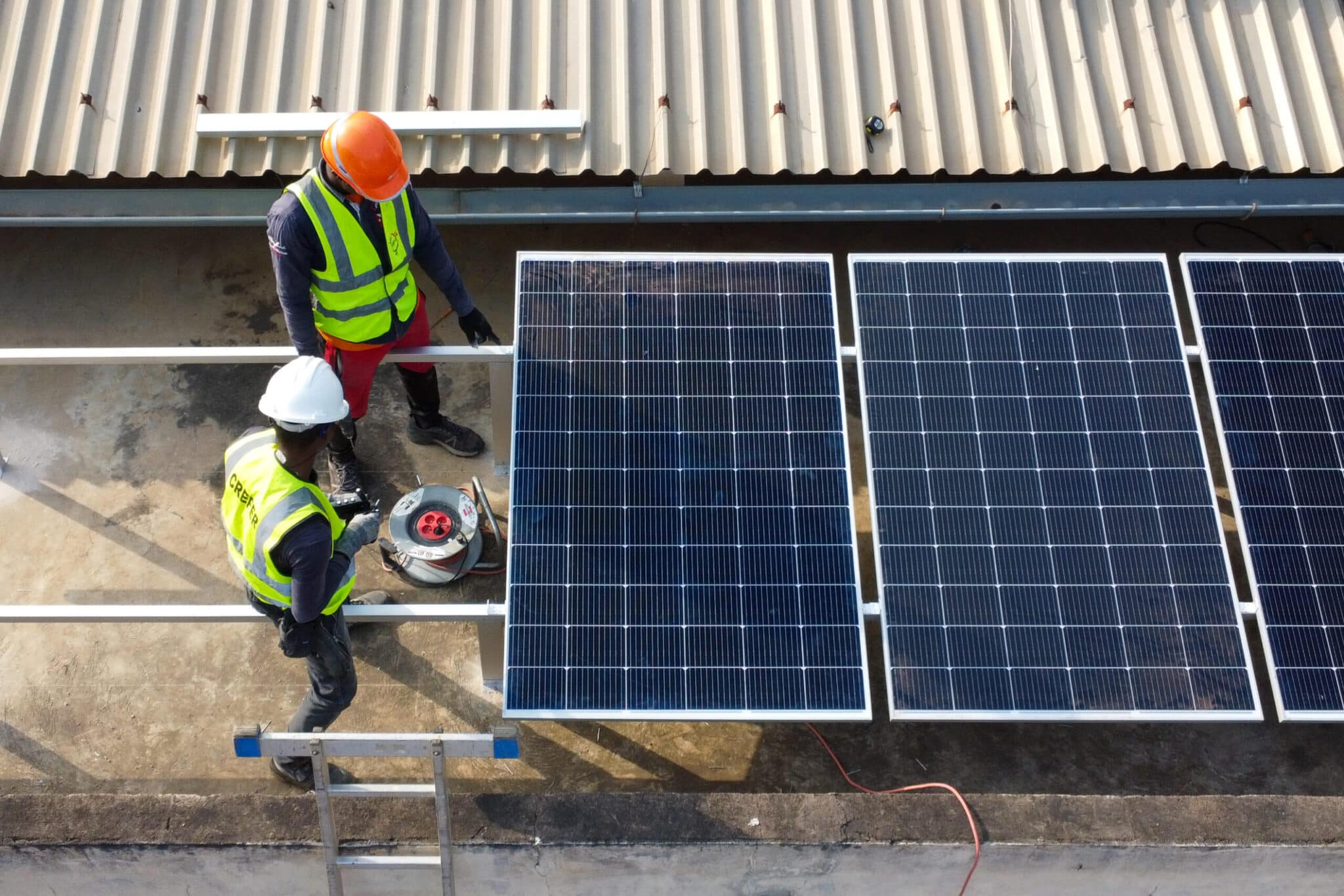 Auszubildende installieren eine Solaranlage auf einer ländlichen Schule (Solar Learning Äthiopien