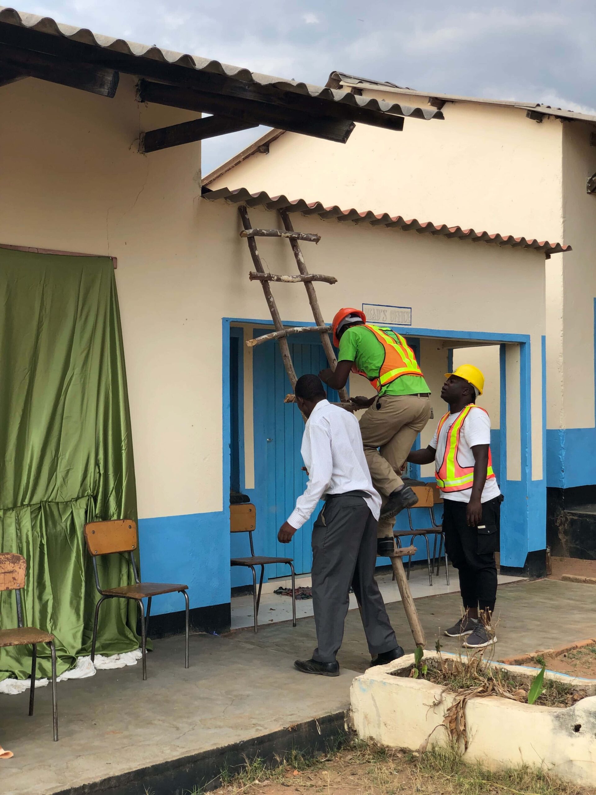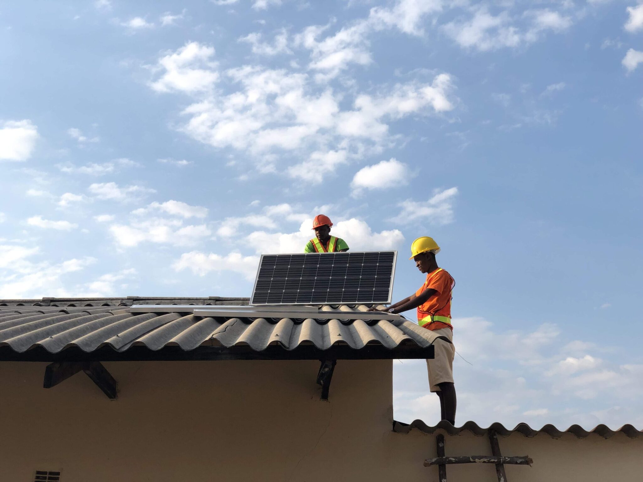 Teil von Paddingtons Team ist ein Elektriker, der in Simbabwe mit Scouts go Solar in die Solartechnik eingeführt wurde. Er lebt in der Nähe der Schule und wird die Wartung der Anlage übernehmen. Mit von der Partie ist auch Sydney Mayerwa, der im Herbst 2021 selbst zum Solarbotschafter ausgebildet worden ist. (Hier die Story dazu.)